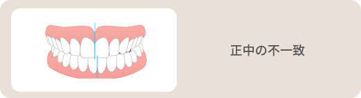 上下の歯の歯の中心部分(正中線)がずれている不正咬合の一種です。正中の不一致は、骨格的な問題がなくても、お口の中の状態によっては「中心のずれ」を治すことは難しい場合があります。